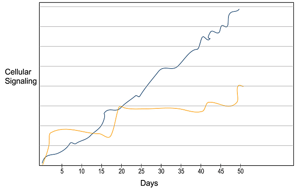 Here’s what’s happening… Those poor folks are only experiencing that cellular signaling every once and awhile when they manage to bust a plateau. Sure… the signal may be stronger on each of those occasions. But it is short lived and too rare to cause noticeable changes in their physique.